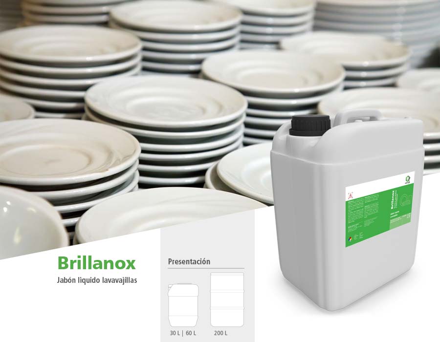 La potente fórmula concentrada de Brillanox contiene entre sus ingredientes un poderoso agente penetrante que desprenderá fácilmente grasa, aceites y restos de comida de sus platos, vasos, sartenes y más, dejándolos limpios y brillantes.